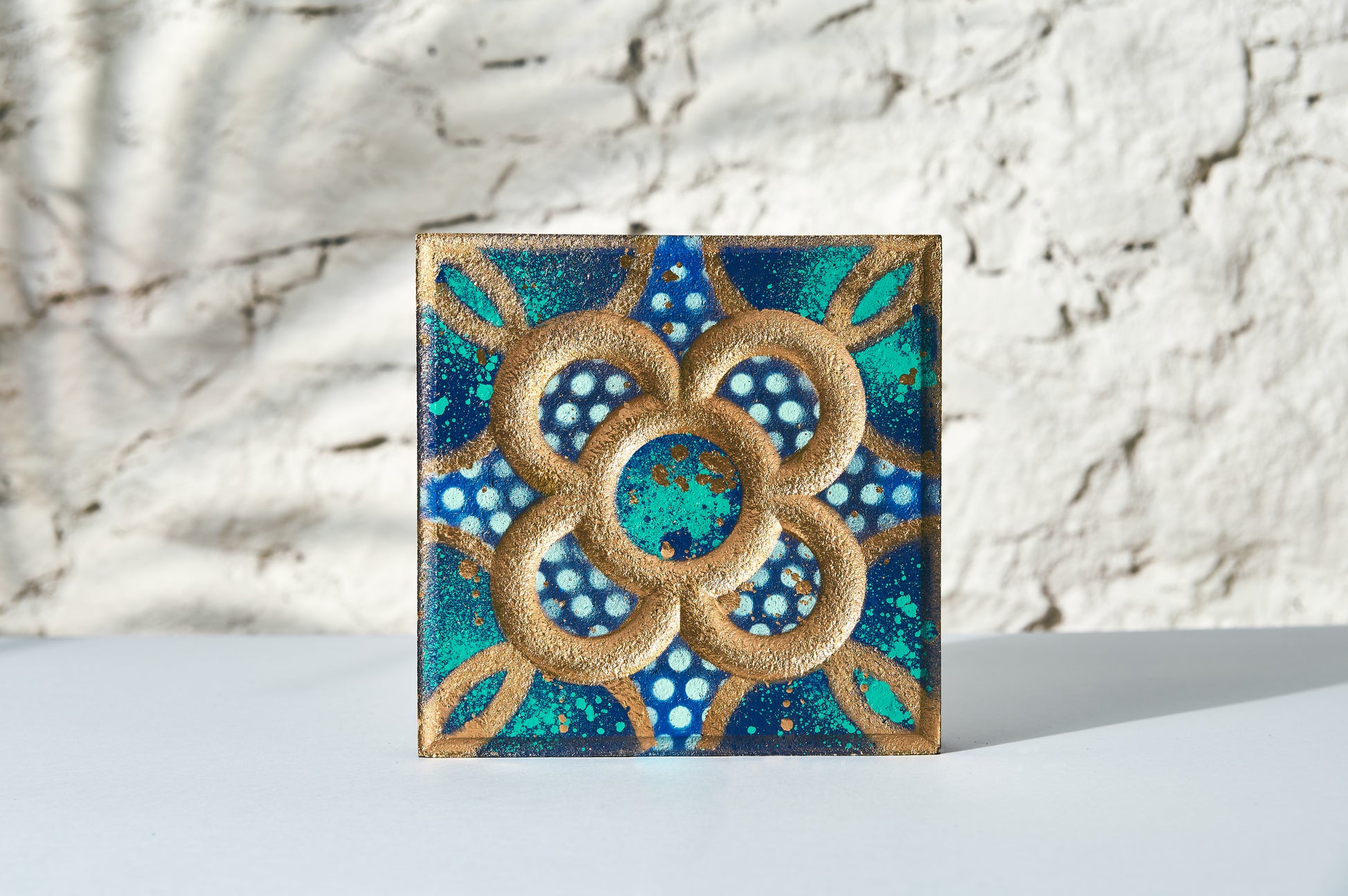 Les peces Panot Golden són les més exclusives de la col·lecció , amb el color daurat com a símbol característic. El Panot Golden Blau combina blaus i turqueses ressaltant la flor de Barcelona.