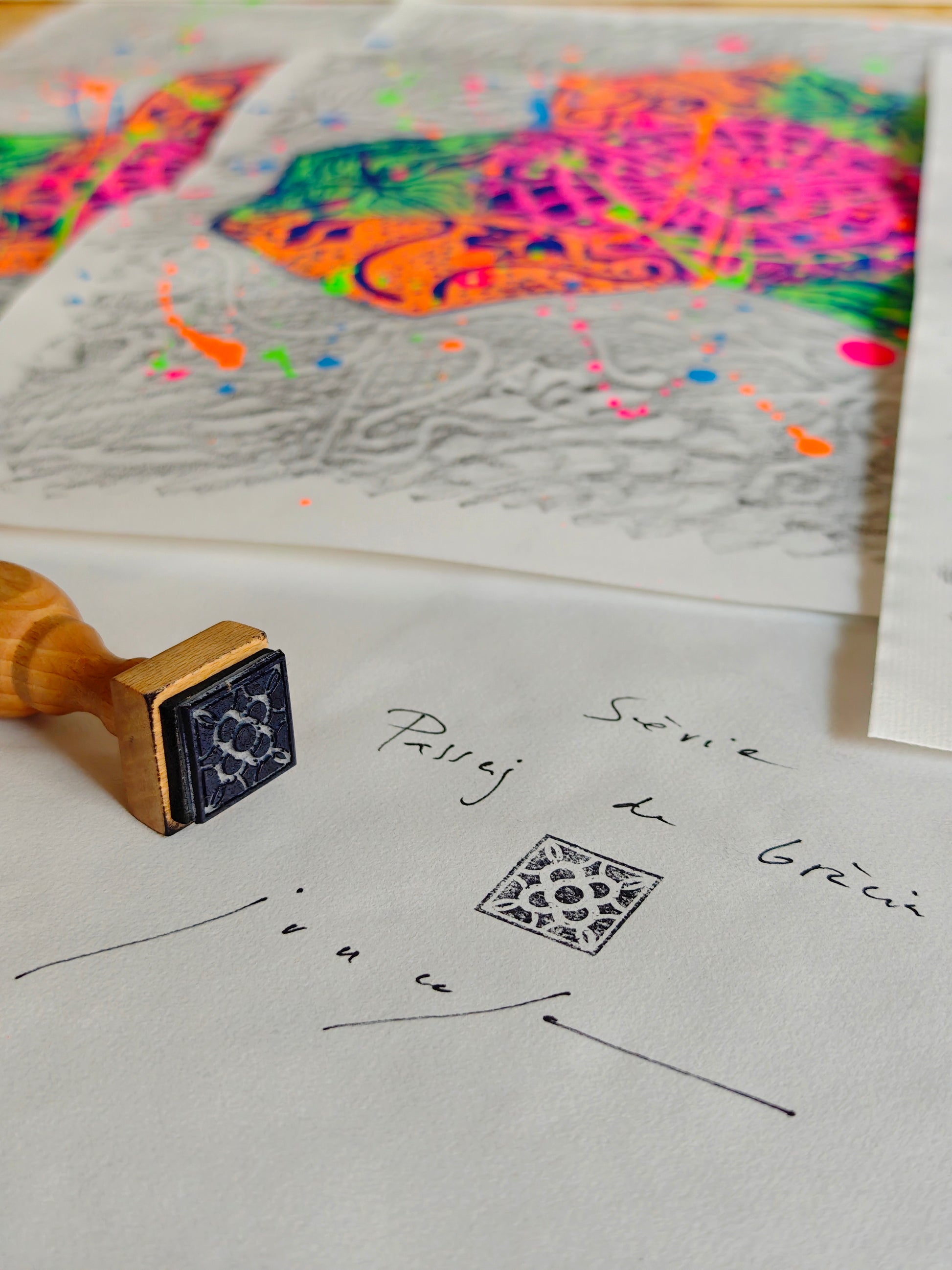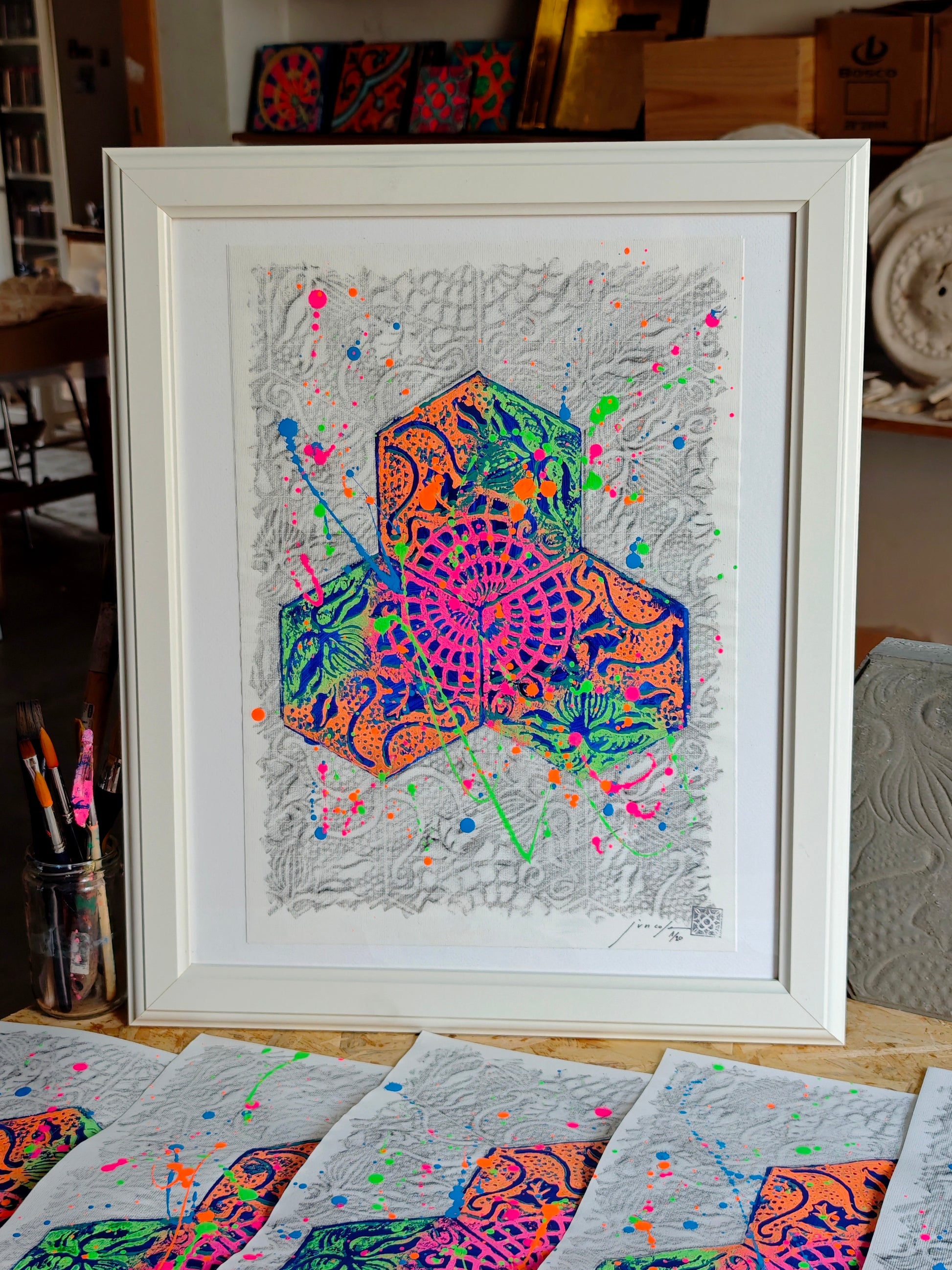 Pintura sobre papel. Serie Passeig de Gràcia, inspirada en los suelos hexagonales que Gaudí diseñó para la popular calle de Barcelona.