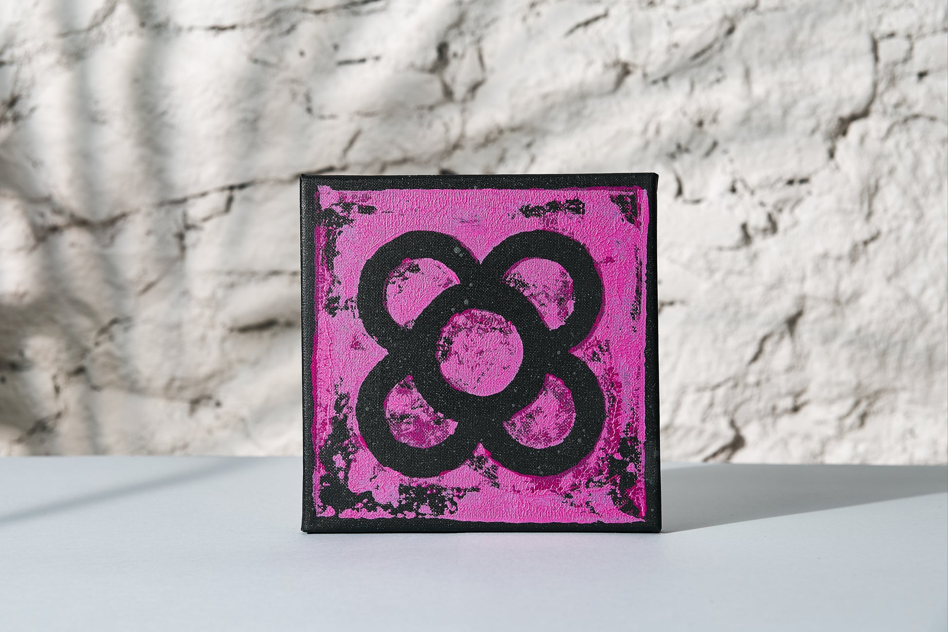 Pieza de la colección Origen, inspirada en el suelo de Barcelona. Se trata de un lienzo pintado por Juncosa, con su particular técnica de arte urbano, que mezcla espray, pintura acrílica y salpicaduras. En ella se puede apreciar la flor del panot, símbolo de la ciudad.