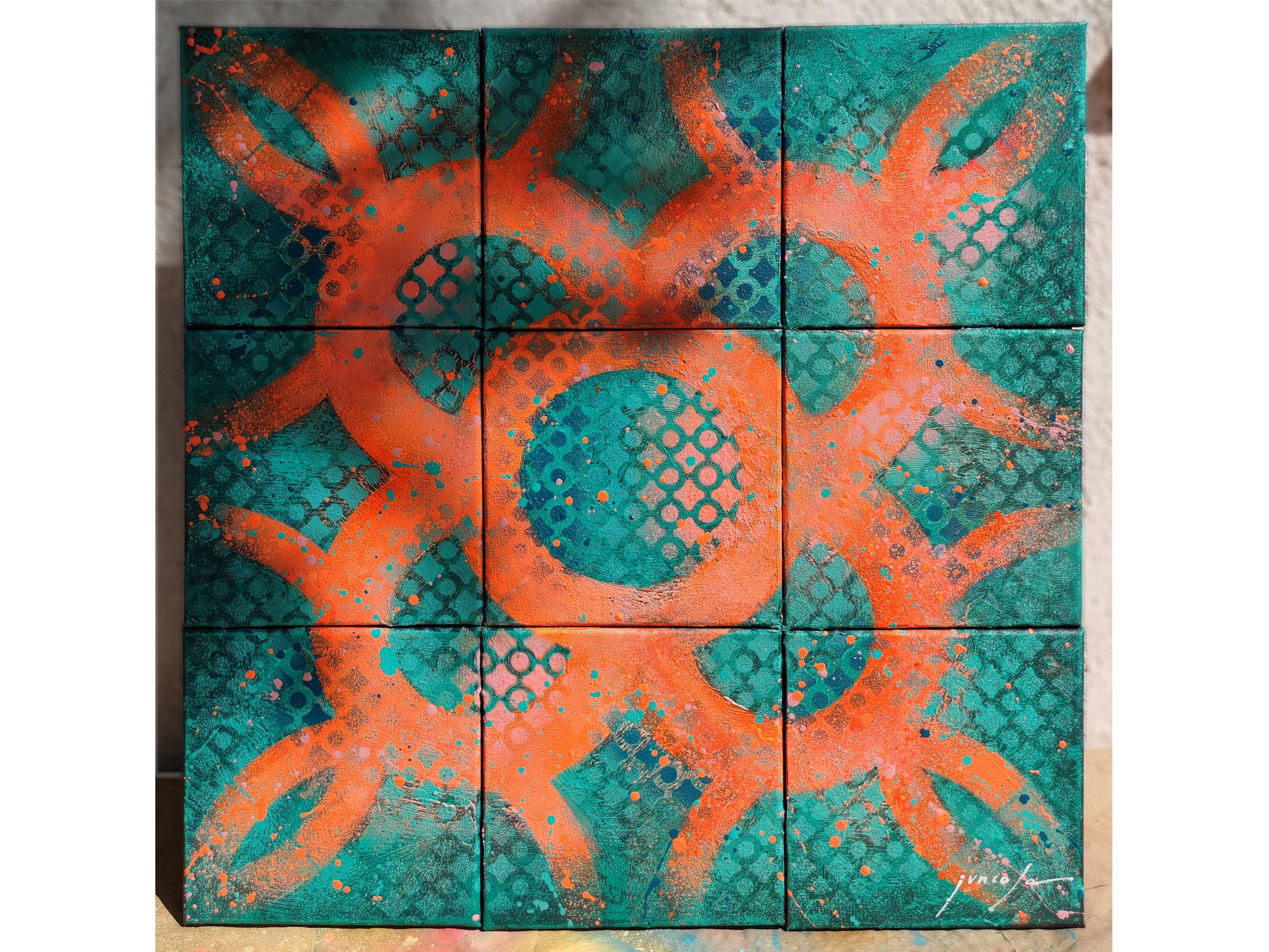 Inspirada en el suelo de Barcelona, esta composición de 9 lienzos representa la flor del Panot característica de Barcelona.