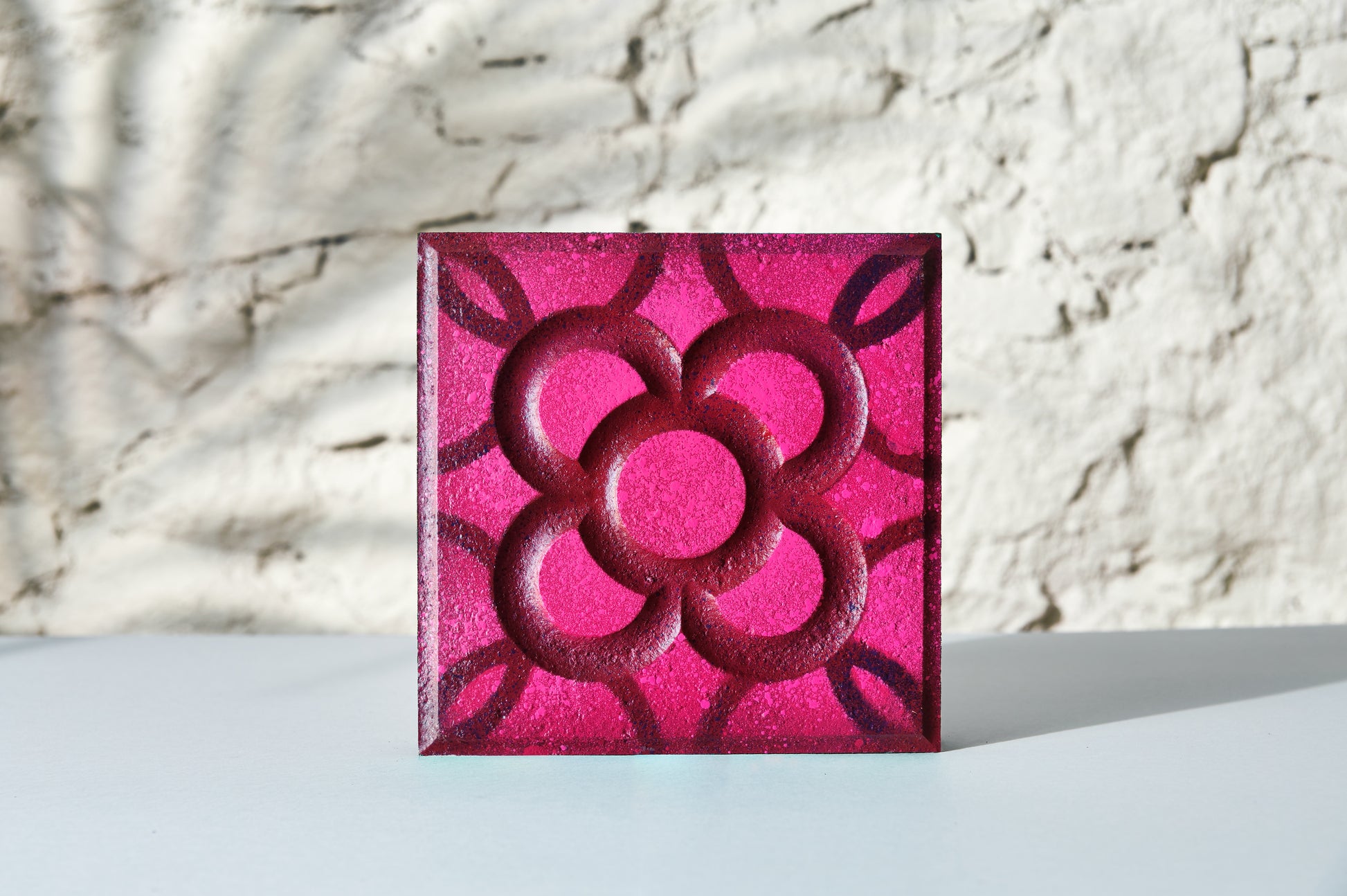 Un auténtico panot de Barcelona, pintado por Juncosa, inspirado en la Rosa de Sant Jordi.