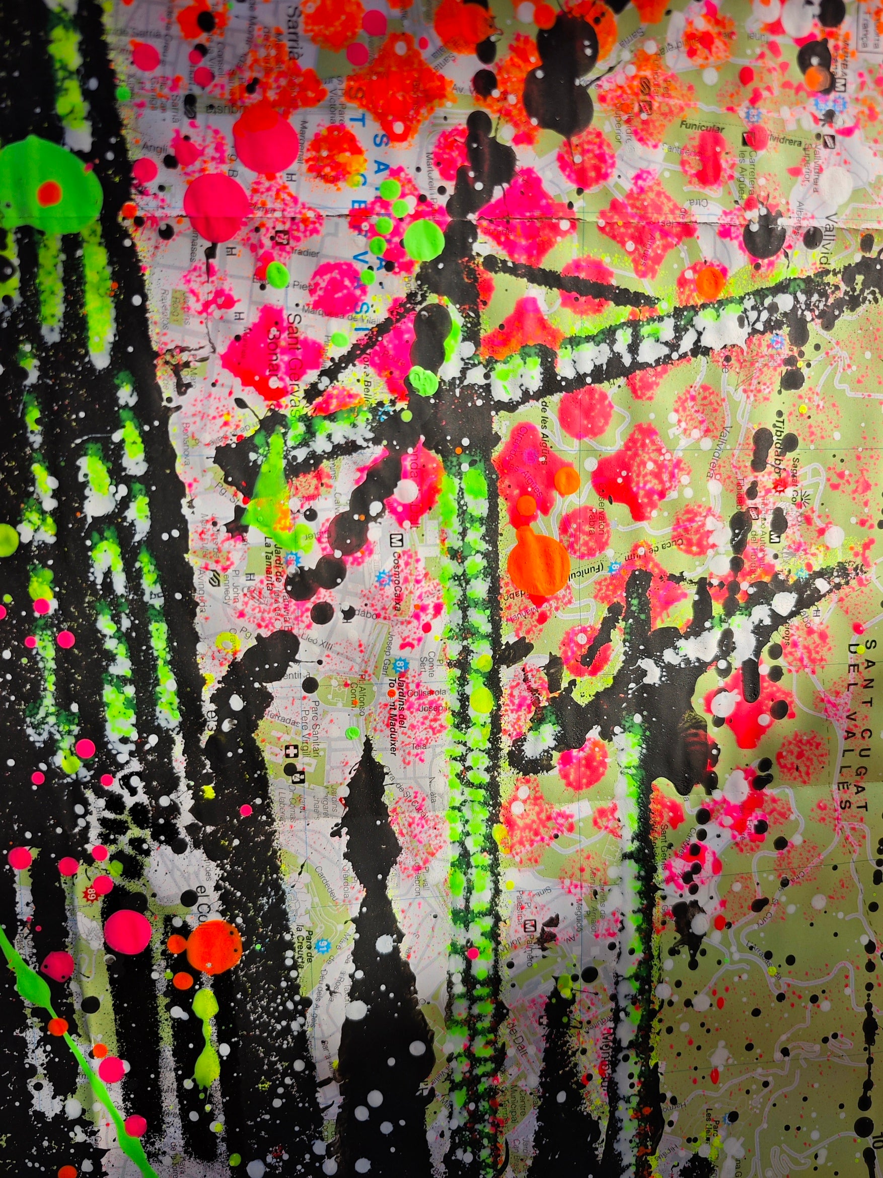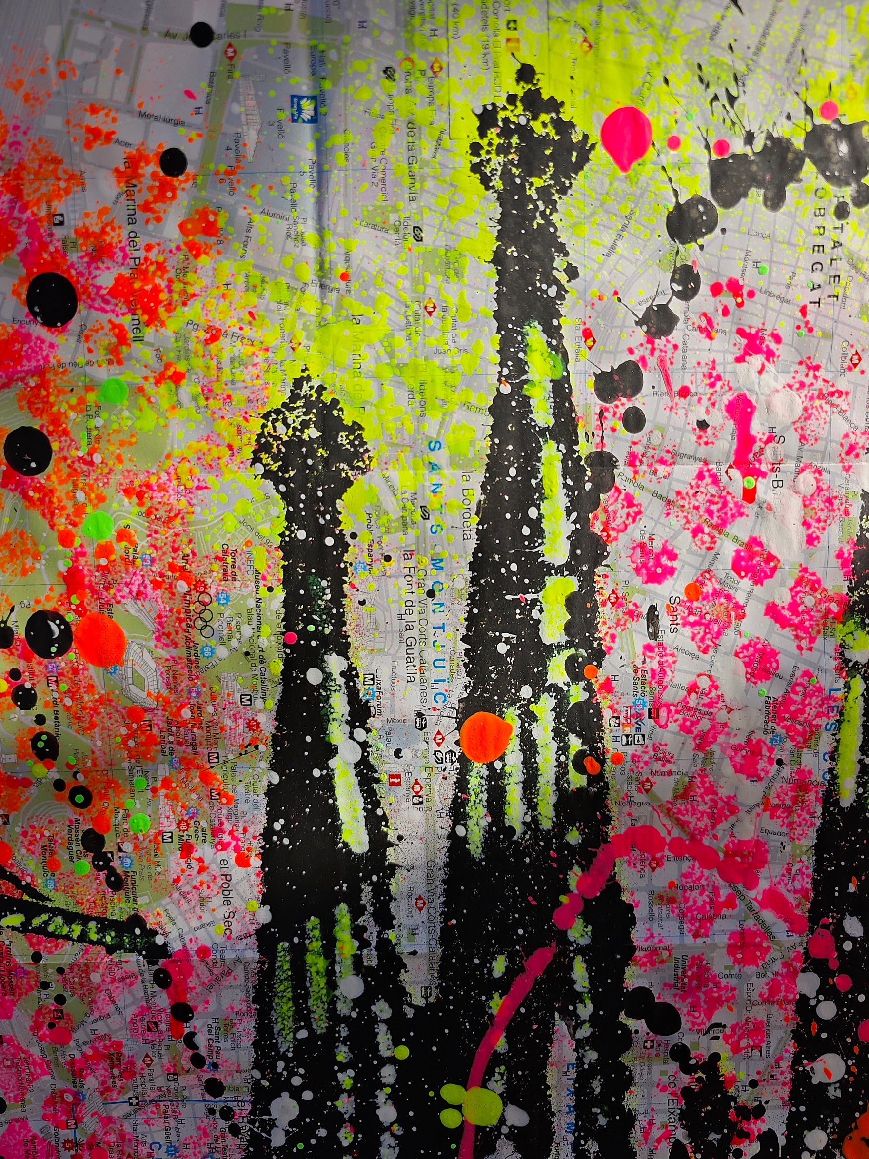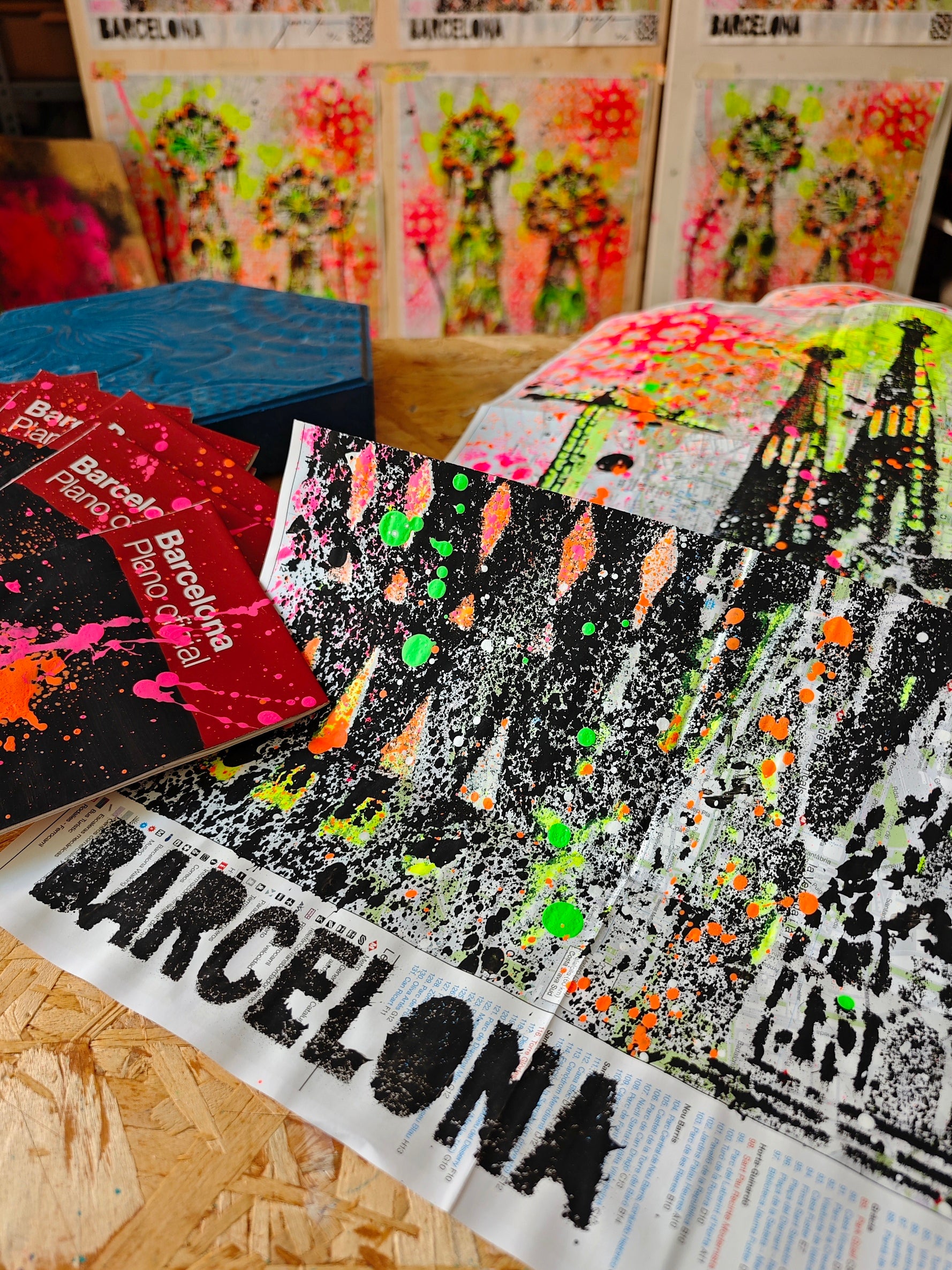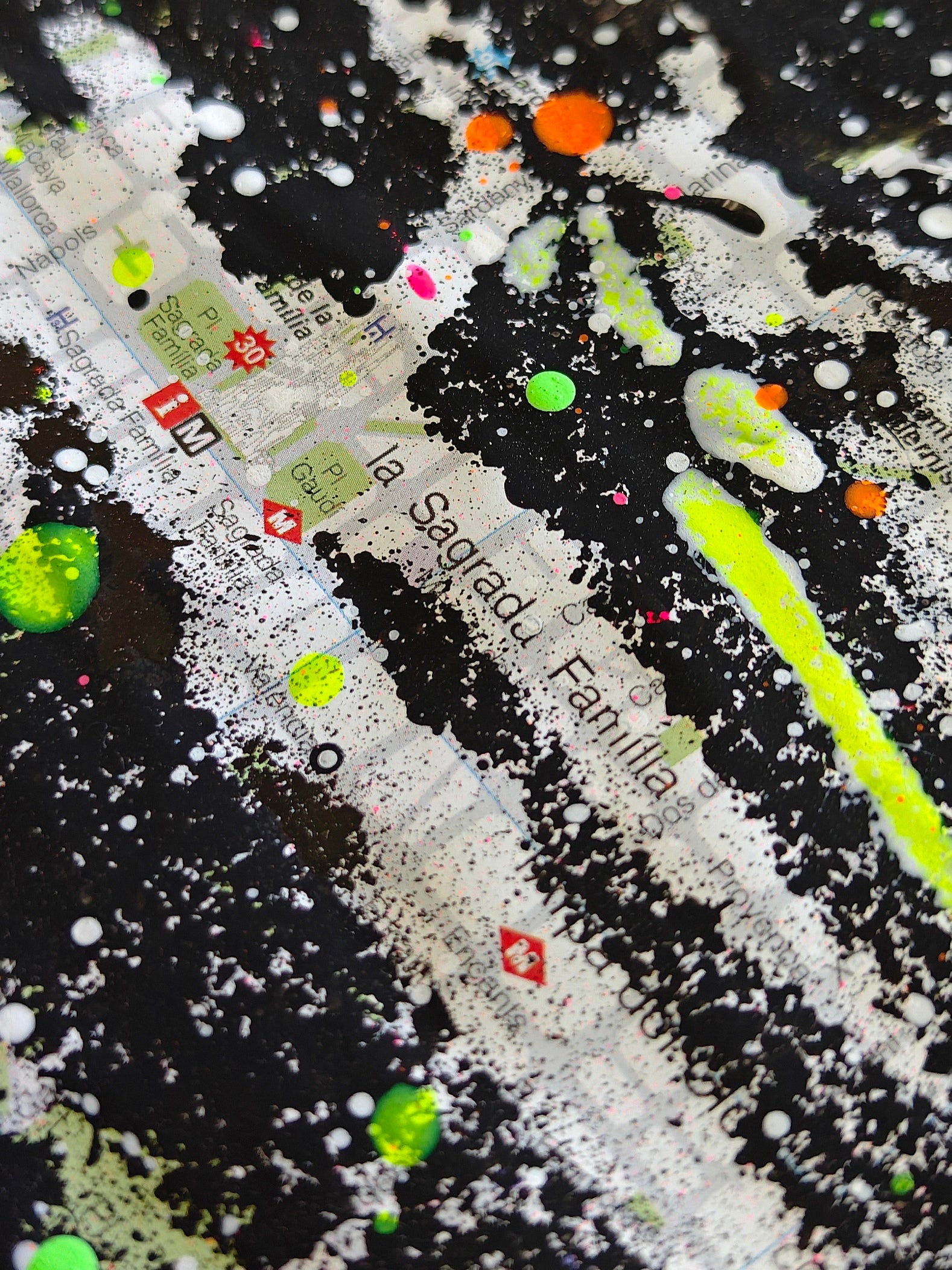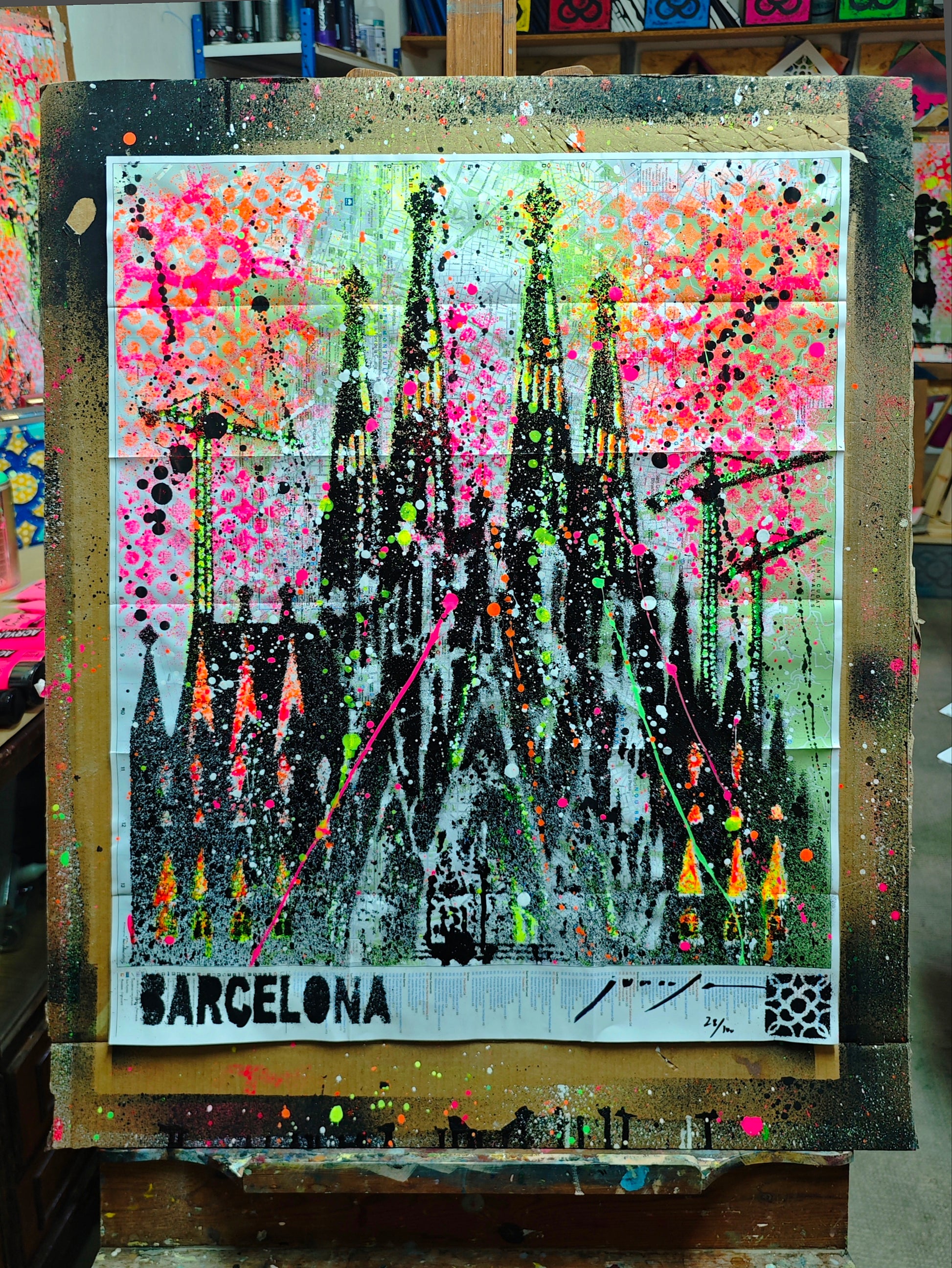 Obra pintada por Juncosa, con su particular técnica de arte urbano, mezclando pintura acrílica, espray y salpicaduras. En primer plano se presenta la Fachada del Nacimiento del Templo Expiatorio de la Sagrada Familia, y de fondo se pueden observar los detalles del urbanismo de la ciudad, los nombres de sus calles, plazas y lugares emblemáticos.